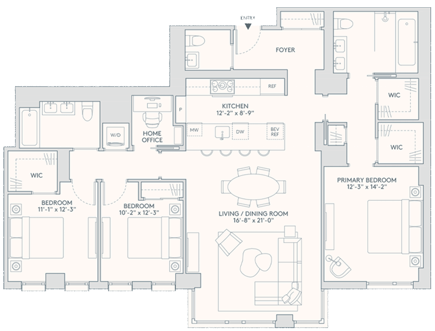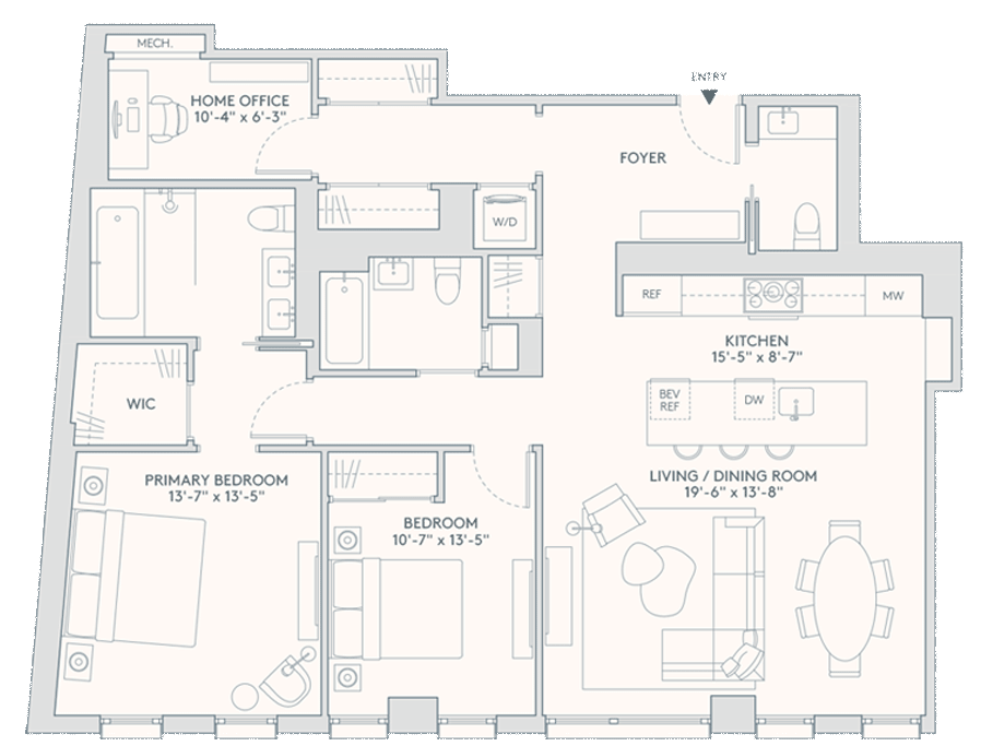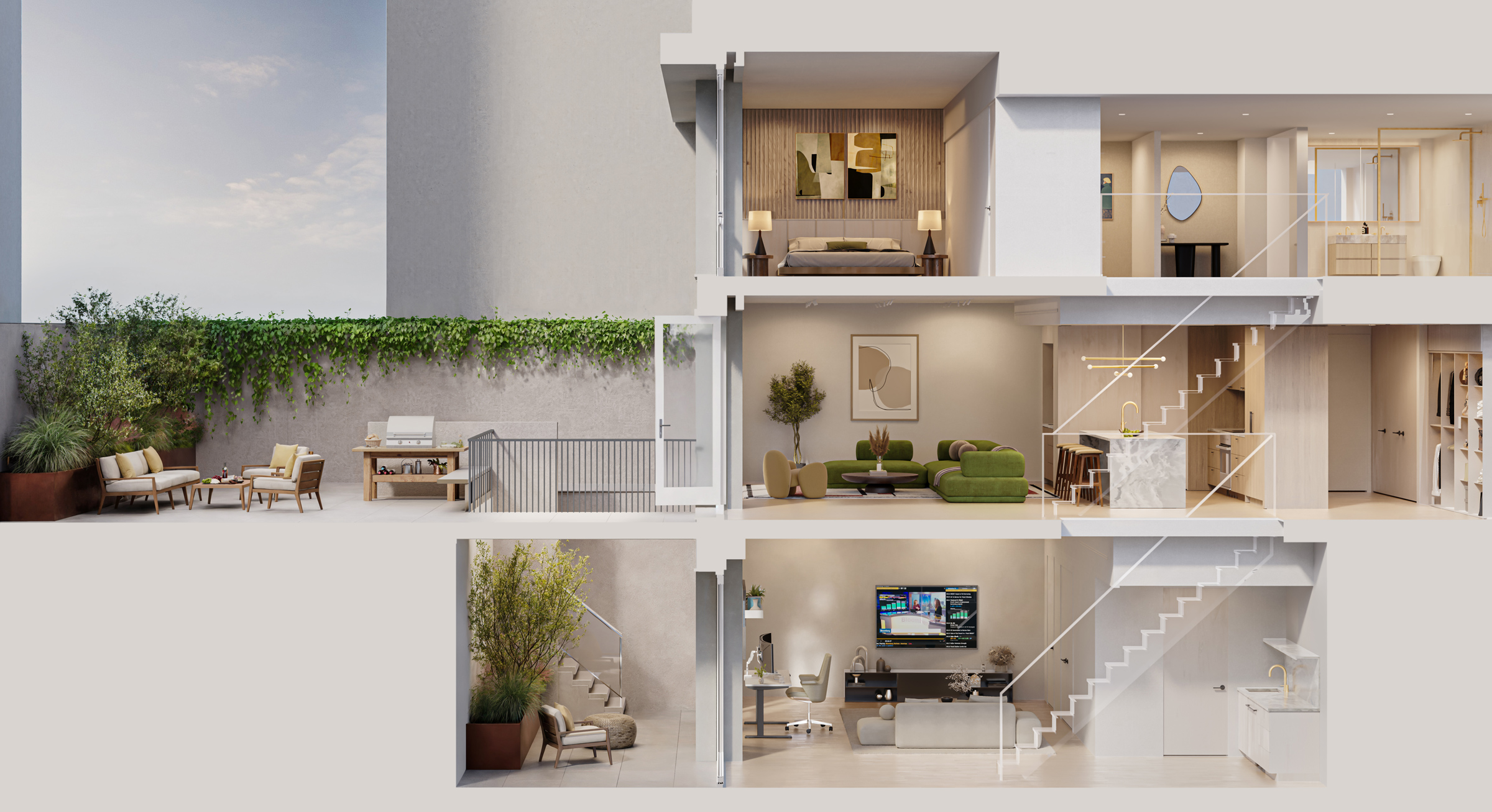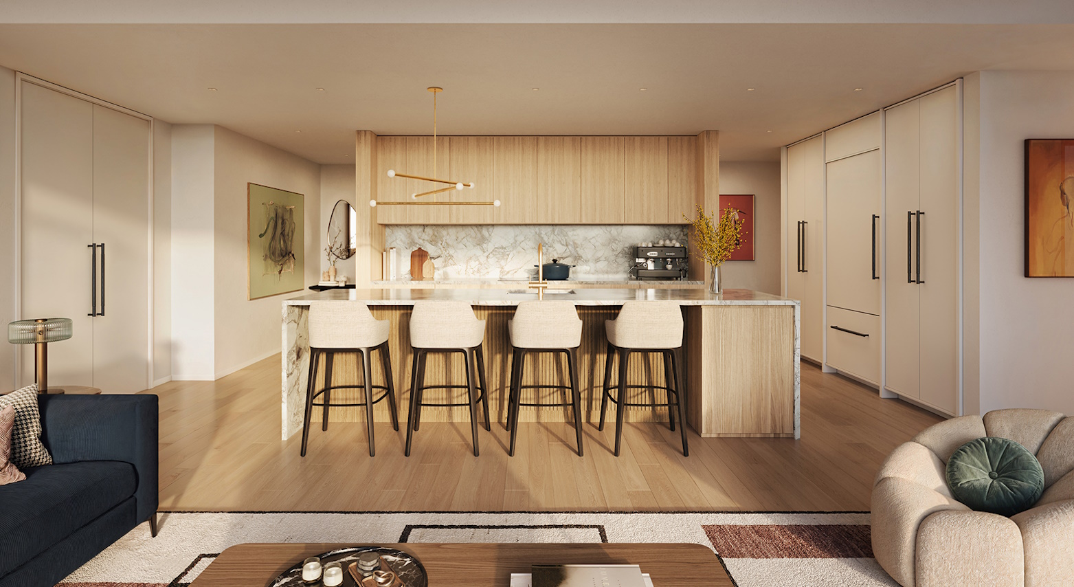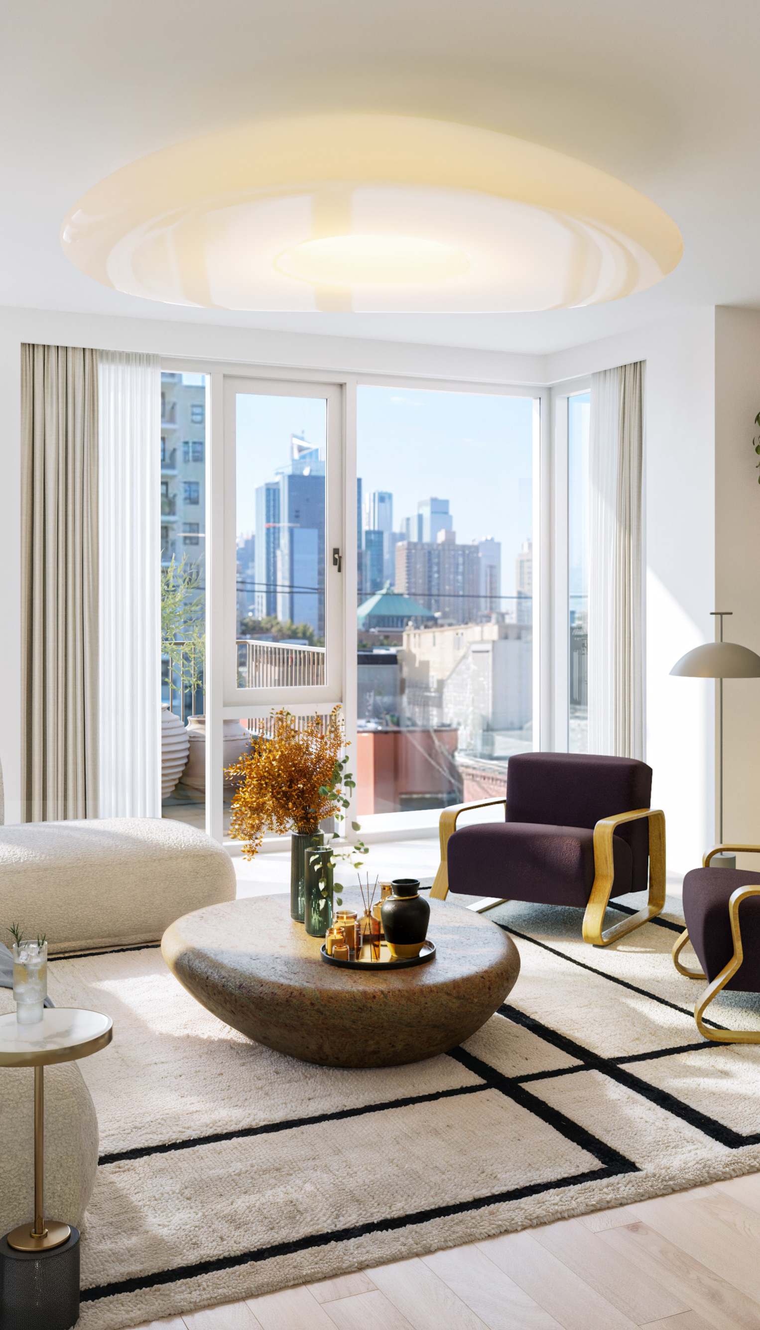 Each carefully considered, single-level one, two, and three-bedroom home embraces an intuitive, fluid logic and an abundance of natural light. Rift-quartered oak flooring and best-in-class appliances contribute to the elevated feel.